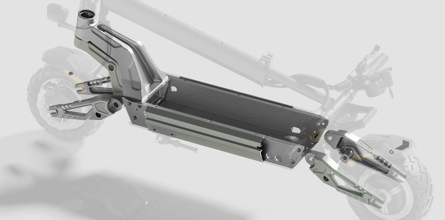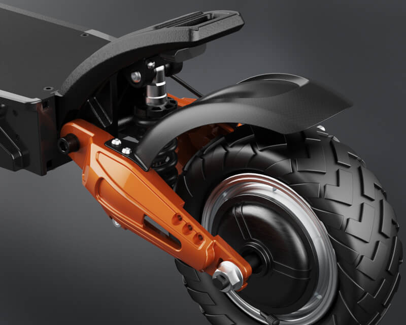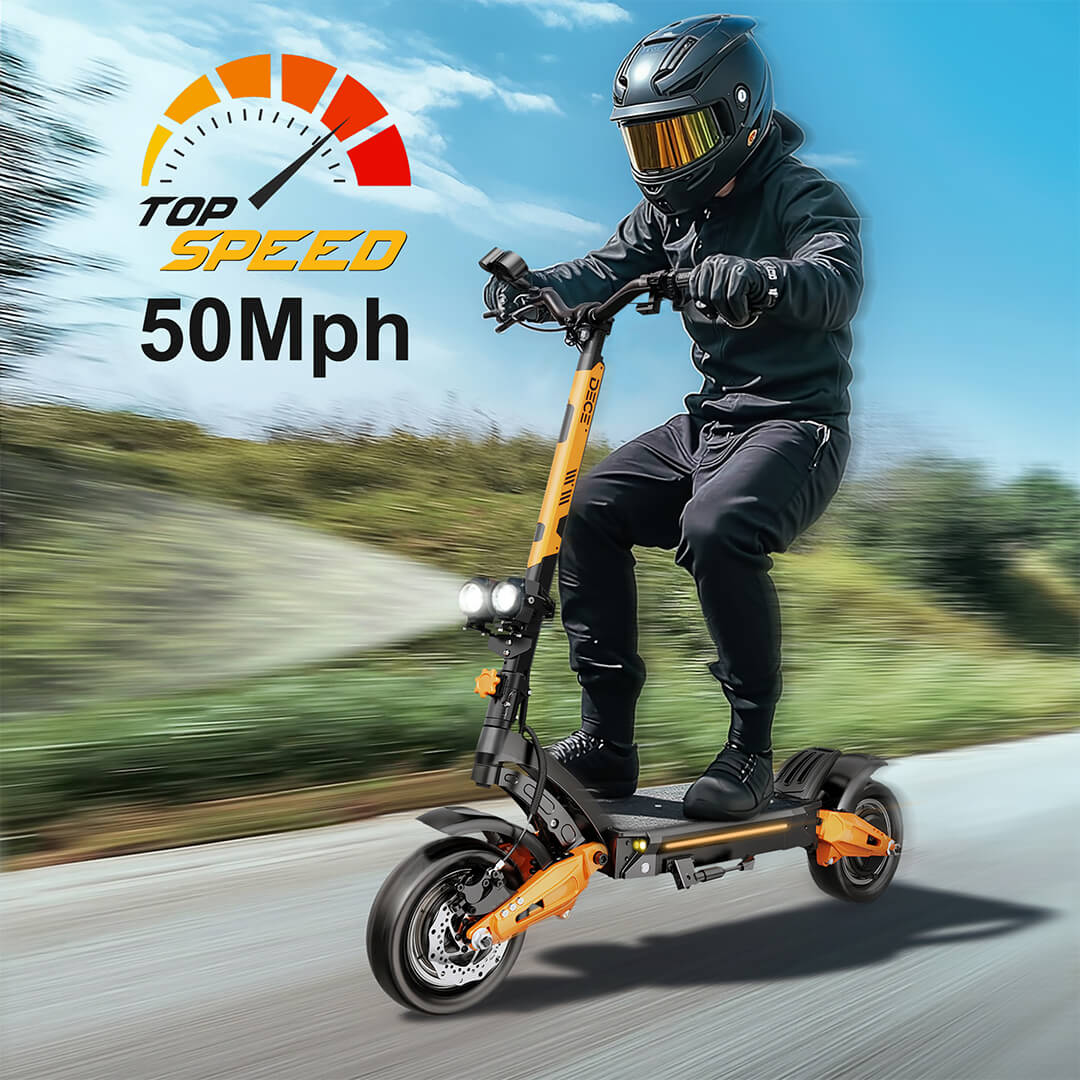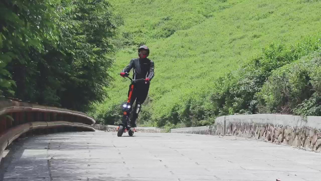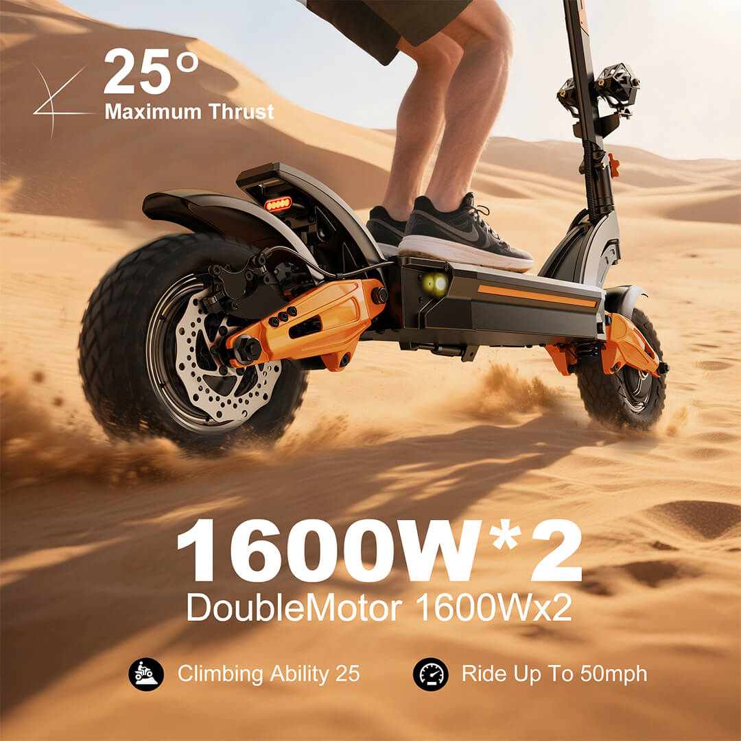 It can reach up to 80 km/h (50 mph) thanks to the dual 1600W motors.